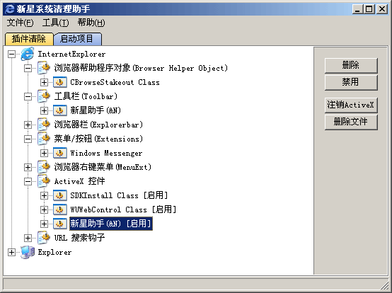 IE 浏览器被安装的以下插件,并可以对其进行删除、删除插件文件、注销ActiveX 控件等操作。